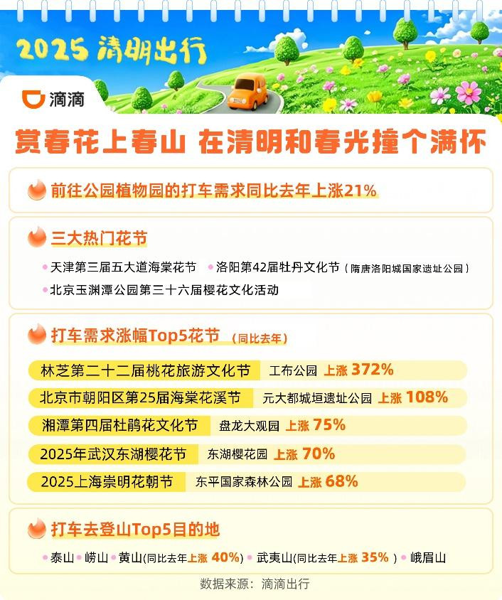 赏春花打车需求上涨21%泰山领衔多地上春山热潮